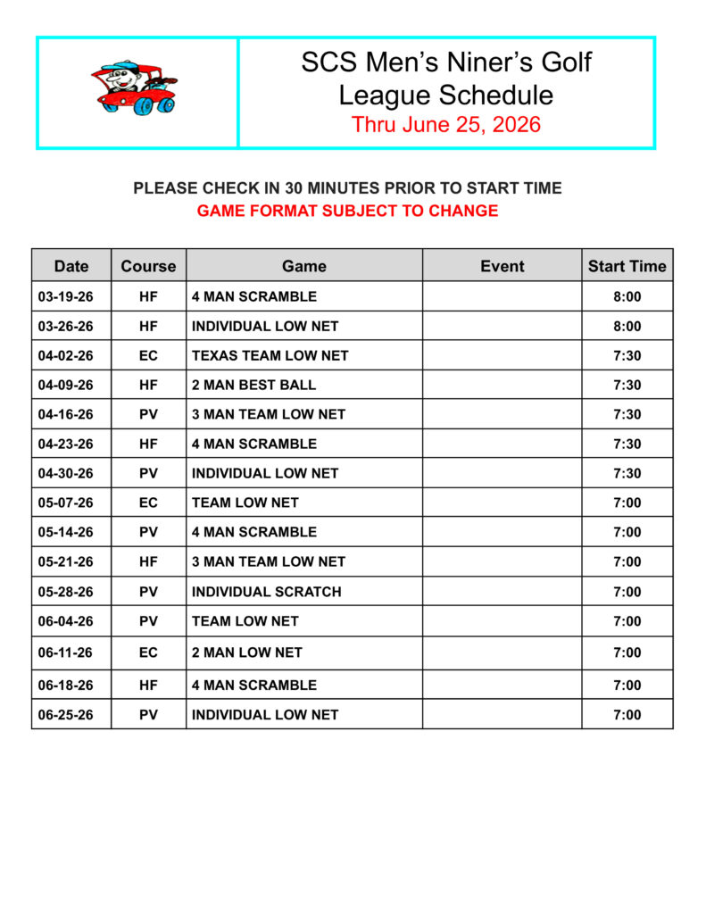 Tournament Cancellations: if for some reason you are unable to play after signing up for an event please contact Tournament Chair Jim Devlin via text message by Wednesday 3PM. 313-402-6302